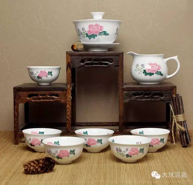 据史料记载,自唐代始湖南湘江一带便广种木芙蓉,因此芙蓉花又是湖南的代名词,毛泽东主席在诗词《七律·答友人》中写道“我欲因之梦寥廓,芙蓉国里尽朝晖”,可见我们的毛主席对于自己故乡有“芙蓉国”这样的雅称也是特别喜爱。而由大球泥为制瓷原材料,高温烧制而成的釉下五彩《芙蓉花茶具》,瓷质釉色纯净 细腻,高洁无瑕,冰肌玉骨。