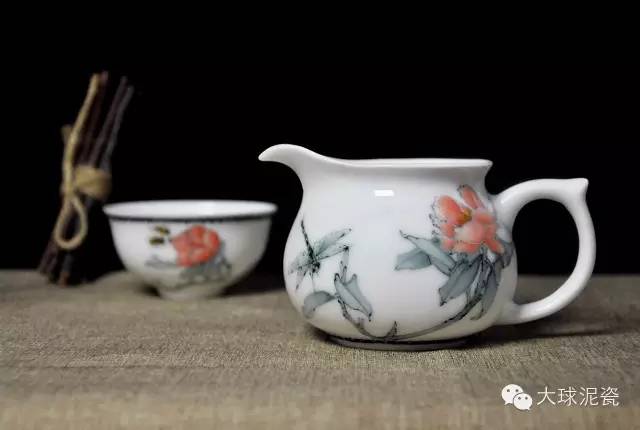 《清香》茶具,画面简洁唯美,强调艺术美学,希望这套茶具能让收藏者享受到人与自然环境间的平衡。当你端起茶杯时,仿佛能感受到春天的美丽与魅力,扑面而来的茶香也瞬间化为花香,让人陶醉在这花的海洋里。这样一套色泽鲜艳、纹理清晰、精致美观的茶具,无疑是大球泥瓷茶具中的经典创作。