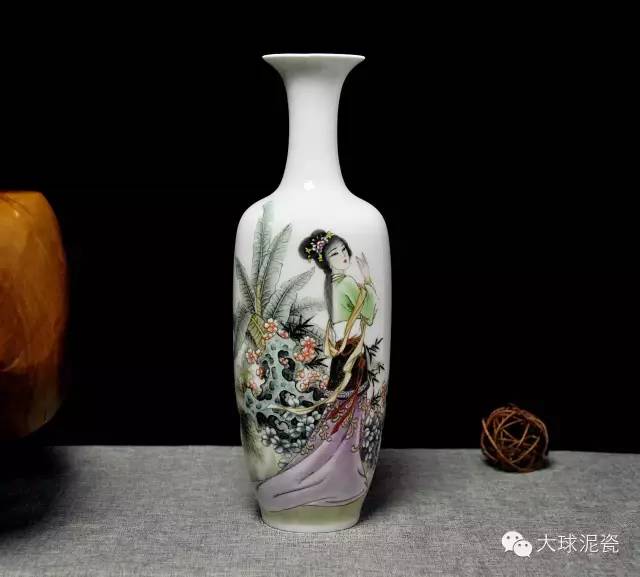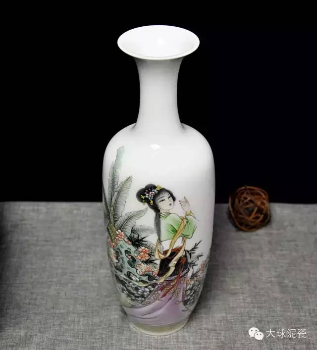 《如花似玉》柳叶瓶,以大球泥为主要材料,经1400°C高温烧制而成。其瓶型设计精美、画面端庄大方、瓷质致密不漏,是珍贵的陶瓷艺术品。《如花似玉》柳叶瓶,由高级工艺美术大师曾亚琴创作,器型撇口,短颈,丰肩,肩下削瘦至足,足内凹。瓶身挺拔秀美,通体素净,雍容中不失典雅,其气韵之美,代表了大球泥瓷的制瓷技艺。