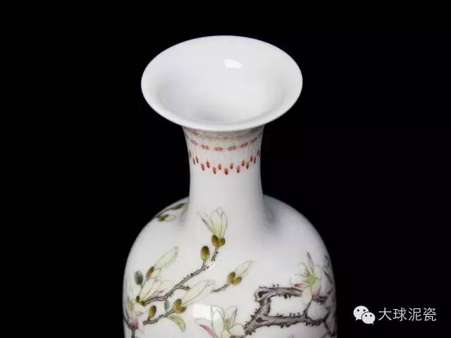 瓶身造型秀美,绘制极精,色彩绚丽。殊为风雅之物,可视为大球泥瓷珐琅彩之最美艺术作品。