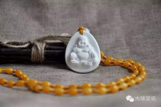 《弥勒佛浮雕瓷像》佩饰,以大球泥为原材料,经高温烧制而成,长:4.2厘米,宽:3.5厘米,厚度:0.9厘米,限量发行:5000枚。瓷质柔白细腻,光洁莹亮。其微浮雕工艺,是这件艺术品一大的亮点。弥勒佛面部造型生动准确,手法细腻流畅,眉目传神,雕工精湛。这件《弥勒佛浮雕瓷像》佩饰,将弥勒佛的面相丰腴,肥硕大耳,脸庞宽大,笑意醉人刻画得淋漓尽致,神乎其神。