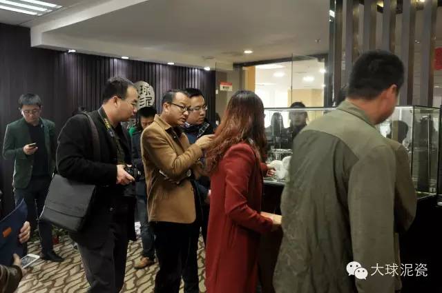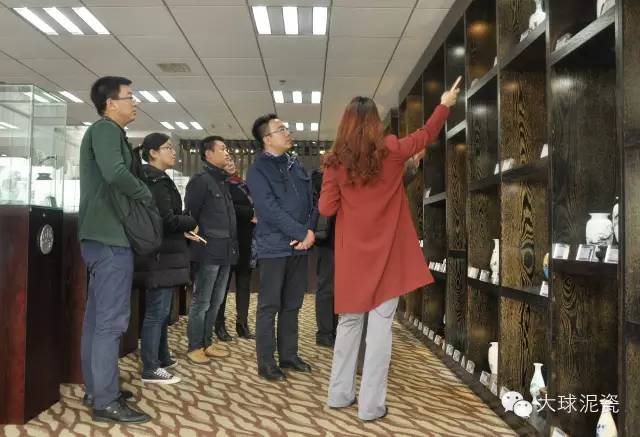 在副总张萍的陪同下,二十多位来自不同行业的精英们参观了展厅的作品,并仔细询问了大球泥原料的形成、发现、开采和利用。