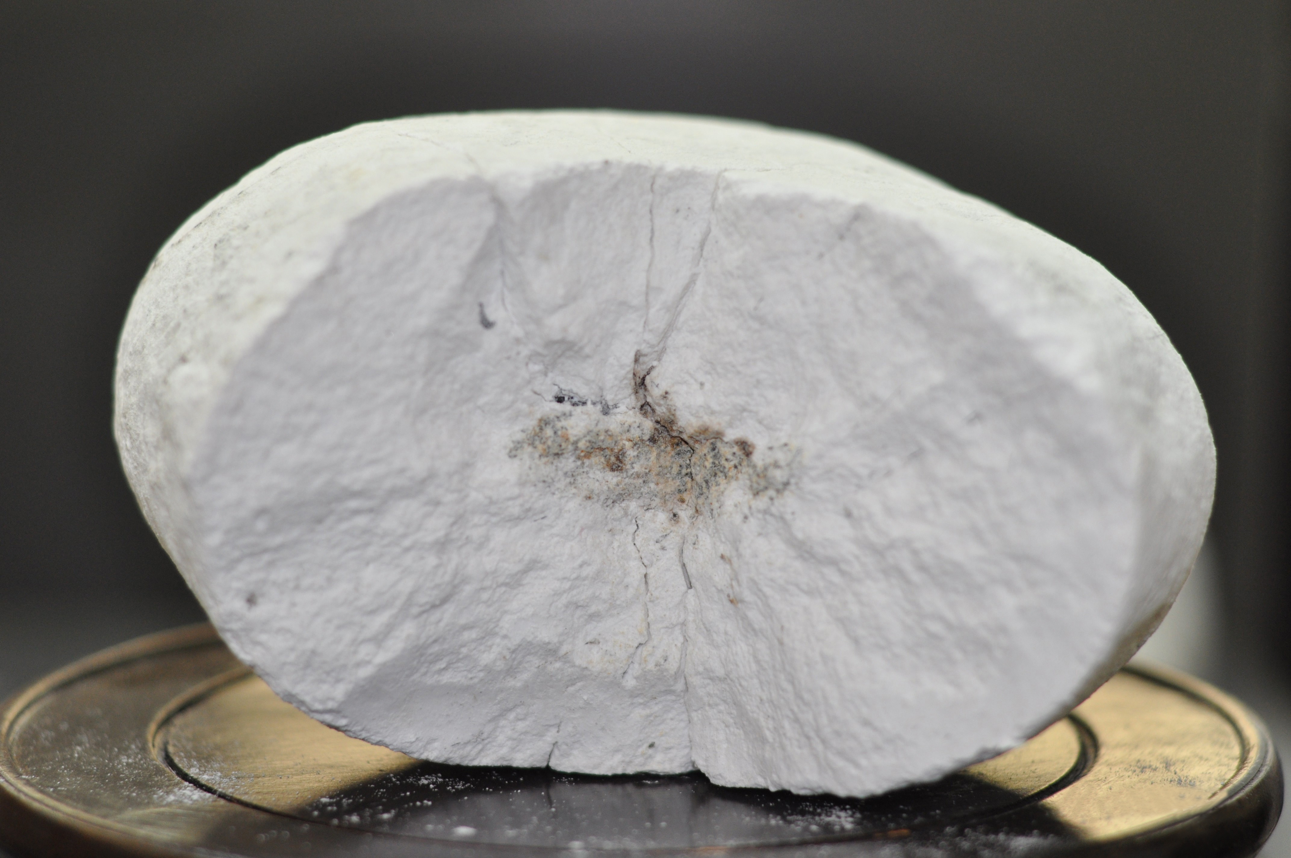 见过大球泥的人都会问,这种雪白球状的矿物质是天然形成的还是后天制作成球状的?答案肯定是天然形成的。因为每一坨中间都有一个核,是氧化铁、氧化锰、电气石等杂质。当今也有人把钾长石、钠长石冒充大球泥这种原料,但它是坚硬的带棱角,也不是自然球体状。真正的大球泥是已经风化了的球形状,砸开后结构致密、成小块状、一捏成粉。也有人做假将瓷泥揉成球状,人工合成的没有分明层次,轻轻一捏就散了。要辨别是不是做假合成或是长石矿石,拿实物敲散验证一下就知道了。