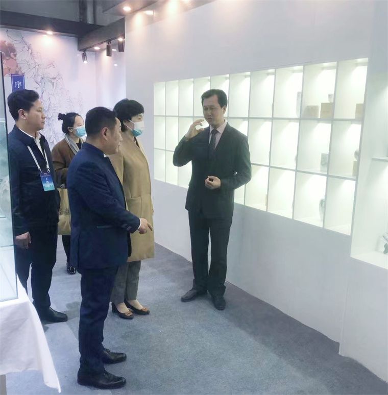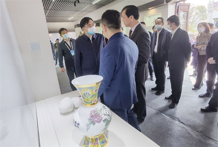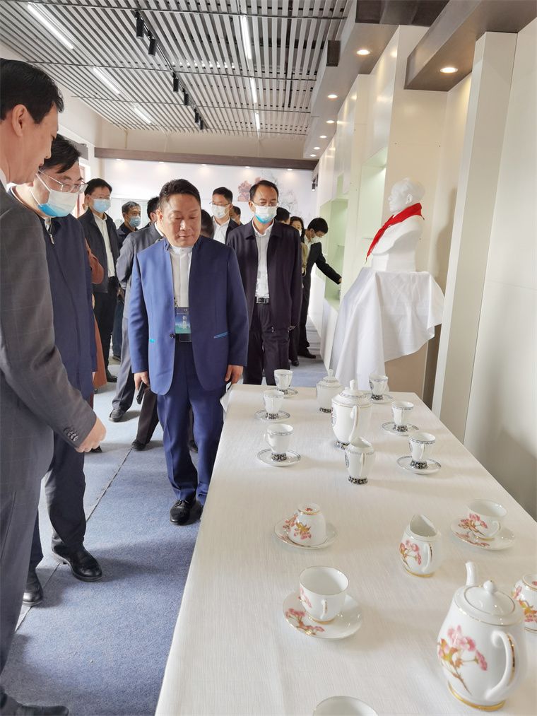 国家文化和旅游部部长胡和平一行到湘瓷馆巡展,董事长滕召华介绍了湖南陶瓷的发展历程及独有特色,讲解了“毛瓷”制作技术及稀缺大球泥原料,汇报了非遗传承及融合创新取得成就。胡部长认为釉下五彩瓷色彩清新、画面丰富,赞誉大球泥瓷设计新颖、白润通透,指示湖南陶瓷要传承融合、守正创新。